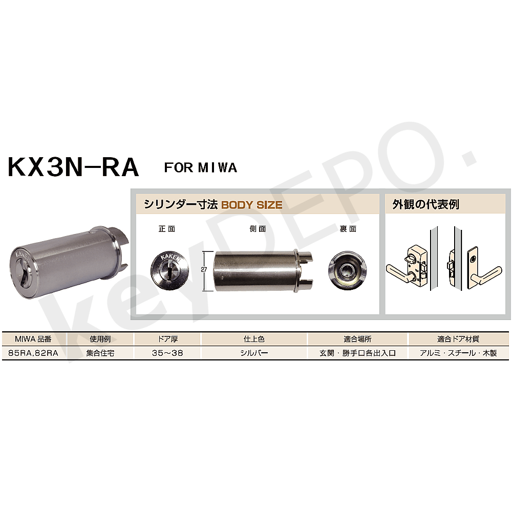 KAKEN KX3N-RA【家研販売/ベルウェーブキーシリンダー/MIWA-RA用】