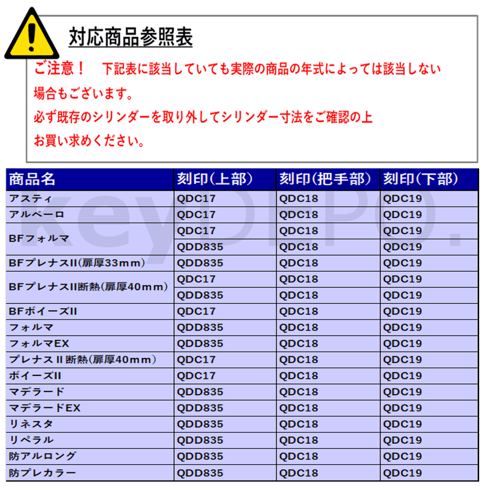 ※商品名・刻印のみでシリンダーを判断せず、必ず既存のシリンダーを取り外して寸法をお確かめの上お買い求めください。