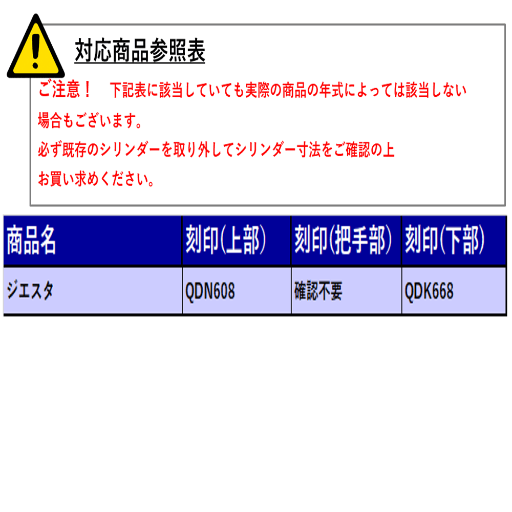 ※商品名・刻印のみでシリンダーを判断せず、必ず既存のシリンダーを取り外して寸法をお確かめの上お買い求めください。