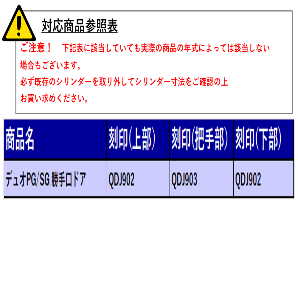 ※商品名・刻印のみでシリンダーを判断せず、必ず既存のシリンダーを取り外して寸法をお確かめの上お買い求めください。