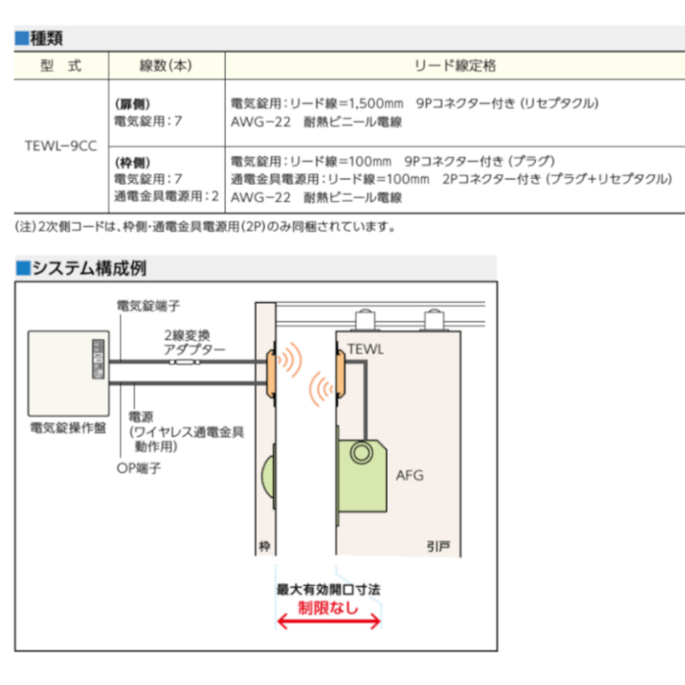 MIWA TEWL-9CC【美和ロック/引戸用ワイヤレス通電金具】