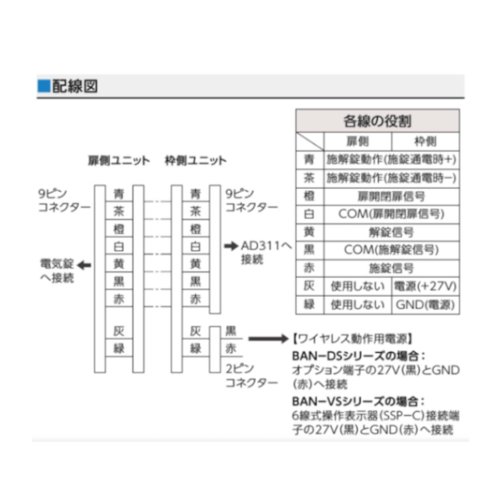 | 対応機種 | 【電気錠】AFGシリーズ 【電気錠操作盤/制御盤】BAN-DS1/BAN-DS2/BAN-DS2C/BAN-VS4~32B |